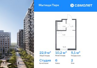 Строим кварталы для жизни с заботой о будущем. Предлагается квартира студия комфорт-класса 22,92 кв.м в корпусе 6 на 2 этаже, в ЖК "Мытищи Парк"