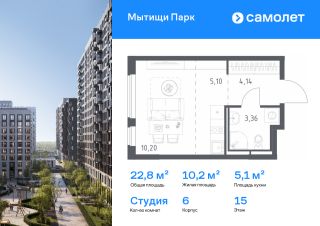 Строим кварталы для жизни с заботой о будущем. Предлагается квартира студия комфорт-класса 22,8 кв.м в корпусе 6 на 15 этаже, в ЖК "Мытищи Парк"