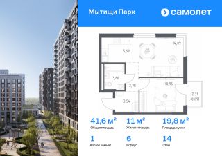 Строим кварталы для жизни с заботой о будущем. Предлагается 1-комнатная квартира комфорт-класса 41,6 кв.м в корпусе 6 на 14 этаже, в ЖК "Мытищи Парк"