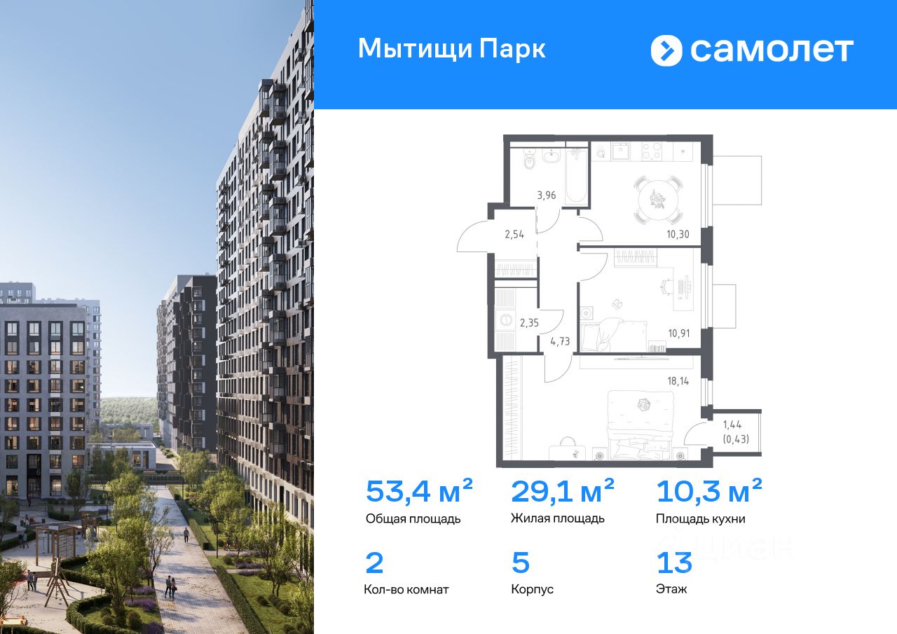 Строим кварталы для жизни с заботой о будущем. Предлагается 2-комнатная квартира комфорт-класса 53,36 кв.м в корпусе 5 на 13 этаже, в ЖК "Мытищи Парк"