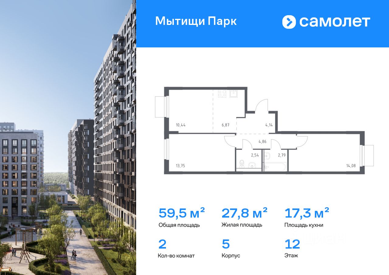 Строим кварталы для жизни с заботой о будущем. Предлагается 2-комнатная квартира комфорт-класса 59,47 кв.м в корпусе 5 на 12 этаже, в ЖК "Мытищи Парк"