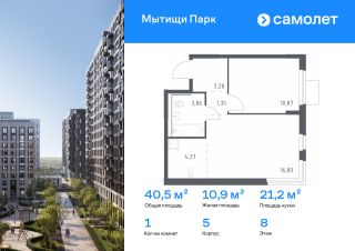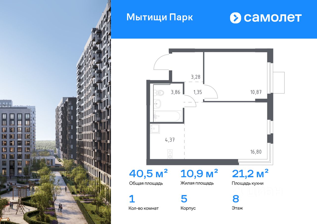 Строим кварталы для жизни с заботой о будущем. Предлагается 1-комнатная квартира комфорт-класса 40,53 кв.м в корпусе 5 на 8 этаже, в ЖК "Мытищи Парк"