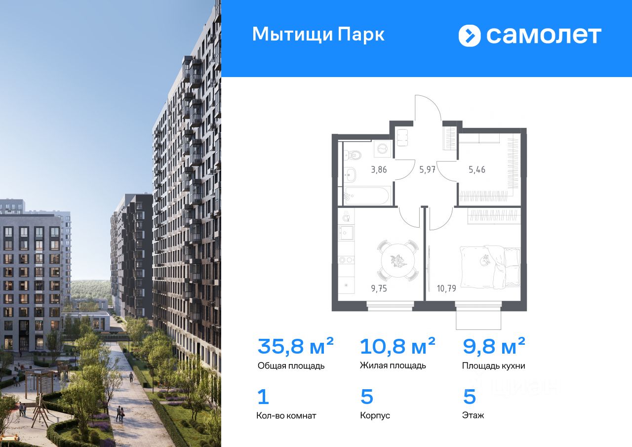 Строим кварталы для жизни с заботой о будущем. Предлагается 1-комнатная квартира комфорт-класса 35,83 кв.м в корпусе 5 на 5 этаже, в ЖК "Мытищи Парк"