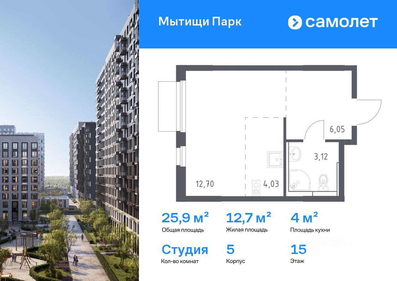 Строим кварталы для жизни с заботой о будущем. Предлагается квартира студия комфорт-класса 25,9 кв.м в корпусе 5 на 15 этаже, в ЖК "Мытищи Парк" Квартира с чистовой отделкой. Доступность дополнительных опций уточняйте у застройщика. Приобрести квартиру возможно по специальным акциям от застройщика, с текущими условиями акций можно ознакомиться в блоке "Акций". Цена динамическая и может отличаться, уточняйте актуальность у застройщика. ЖК "Мытищи Парк" — это надежные и долговечные монолитные корпуса. При проектировании домов и территории застройщик учел потребности жильцов всех возрастов — молодых пар, семей с детьми и пожилых людей. ЖК "Мытищи Парк" расположен в Московской области и с двух сторон окружен Пироговским лесопарком.