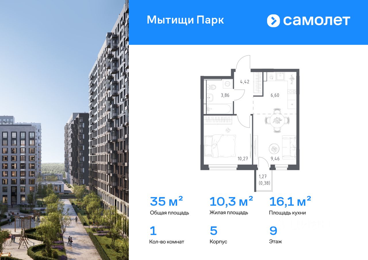 Строим кварталы для жизни с заботой о будущем. Предлагается 1-комнатная квартира комфорт-класса 34,99 кв.м в корпусе 5 на 9 этаже, в ЖК "Мытищи Парк"