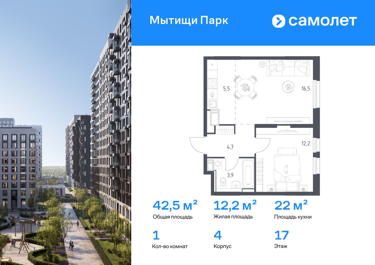 Строим кварталы для жизни с заботой о будущем. Предлагается 1-комнатная квартира комфорт-класса 42,5 кв.м в корпусе 4 на 17 этаже, в ЖК "Мытищи Парк"
