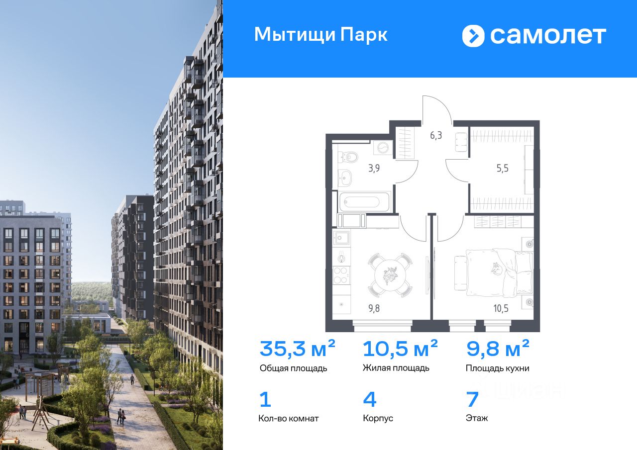 Строим кварталы для жизни с заботой о будущем. Предлагается 1-комнатная квартира комфорт-класса 35,3 кв.м в корпусе 4 на 7 этаже, в ЖК "Мытищи Парк"