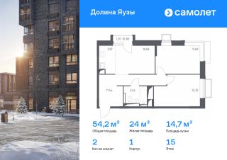 Строим кварталы для жизни с заботой о будущем. Предлагается 2-комнатная квартира комфорт-класса 54,2 кв.м в корпусе 1 на 15 этаже, в ЖК "Долина Яузы"