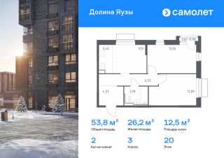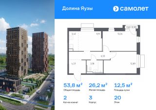 Строим кварталы для жизни с заботой о будущем. Предлагается 2-комнатная квартира комфорт-класса 53,8 кв.м в корпусе 3 на 20 этаже, в ЖК "Долина Яузы"