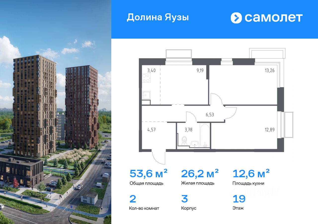 Строим кварталы для жизни с заботой о будущем. Предлагается 2-комнатная квартира комфорт-класса 53,62 кв.м в корпусе 3 на 19 этаже, в ЖК "Долина Яузы"