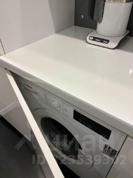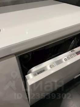 Встроенная кухня, фасады — крашеный МДФ, надёжная фурнитура, качественная встроенная техника (Посудомоечная машина Bosch 60 см, полноразмерная стиральная машина Bosch, духовой шкаф и варочная панель Bosch, встроенный холодильник Whirlpool)