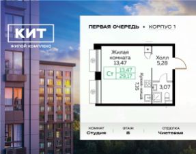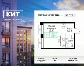 Продаётся студия 29.3 кв.м. с чистовой отделкой в ЖК "КИТ" на 8-м этаже 25 этажного дома.