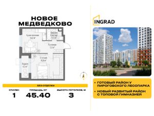 Прямая продажа от застройщика. В жилом квартале, расположенном в северо-западной части города Мытищи, продаётся 1-спальная квартира площадью 45.40 кв.м без отделки. Квартира расположена на 17 этаже 17-этажного дома, корпус 39, в жилом квартале комфорт-класса Новое Медведково (застройщик ГК Инград).