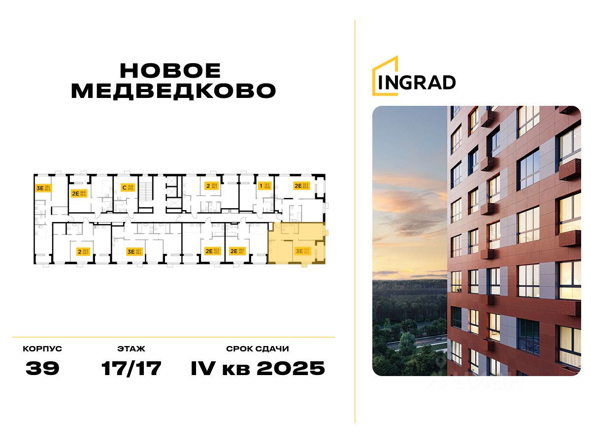 Прямая продажа от застройщика. В жилом квартале, расположенном в северо-западной части города Мытищи, продаётся 2-спальная квартира площадью 60.10 кв.м без отделки. Квартира расположена на 17 этаже 17-этажного дома, корпус 39, в жилом квартале комфорт-класса Новое Медведково (застройщик ГК Инград).