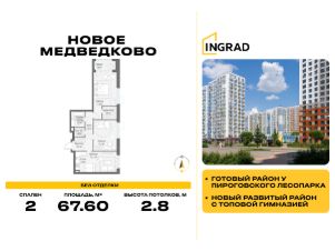 Прямая продажа от застройщика. В жилом квартале, расположенном в северо-западной части города Мытищи, продаётся 2-спальная квартира площадью 67.60 кв.м без отделки. Квартира расположена на 13 этаже 17-этажного дома, корпус 35, в жилом квартале комфорт-класса Новое Медведково (застройщик ГК Инград).