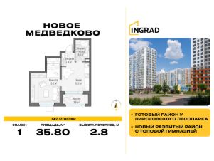 Прямая продажа от застройщика. В жилом квартале, расположенном в северо-западной части города Мытищи, продаётся 1-спальная квартира площадью 35.80 кв.м без отделки. Квартира расположена на 11 этаже 18-этажного дома, корпус 41, в жилом квартале комфорт-класса Новое Медведково (застройщик ГК Инград).