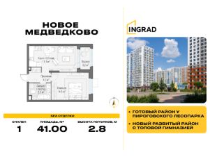 Прямая продажа от застройщика. В жилом квартале, расположенном в северо-западной части города Мытищи, продаётся 1-спальная квартира площадью 41.00 кв.м без отделки. Квартира расположена на 11 этаже 18-этажного дома, корпус 41, в жилом квартале комфорт-класса Новое Медведково (застройщик ГК Инград).