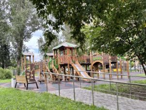 Комфортная и безопасная территория: Благоустроенный двор с детской и спортивной площадками, круглосуточное видеонаблюдение, наземная парковка.