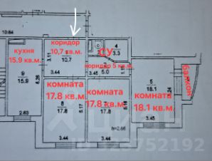 Все комнаты раздельные-17,7 кв.м.,17,7 кв.м.18 кв.м. Лоджия выходит из комнаты 18 кв.м. Коридор 15,7 кв.м. СУ раздельный. Кухня 16 кв.м.