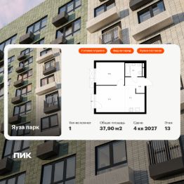 Продаётся 1-комн. квартира площадью 37,9 кв.м на 13 этаже 24 этажного дома (Корпус 7, Секция 1) проекта ПИК Яуза парк. Светлый просторный подъезд на уровне земли, функциональная планировка, большие окна, c отделкой.