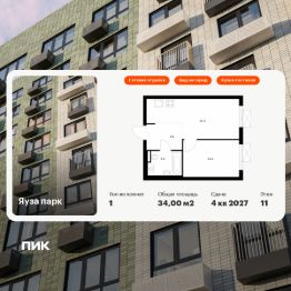 Продаётся 1-комн. квартира площадью 34 кв.м на 11 этаже 24 этажного дома (Корпус 7, Секция 1) проекта ПИК Яуза парк. Светлый просторный подъезд на уровне земли, функциональная планировка, большие окна, c отделкой.