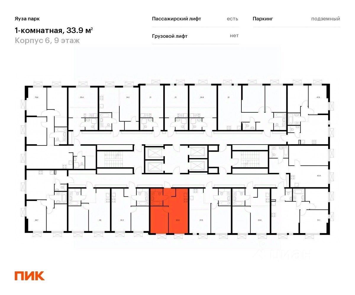 Продаётся 1-комн. квартира площадью 33,9 кв.м на 9 этаже 24 этажного дома (Корпус 6, Секция 1) проекта ПИК Яуза парк. Светлый просторный подъезд на уровне земли, функциональная планировка, большие окна, c отделкой.