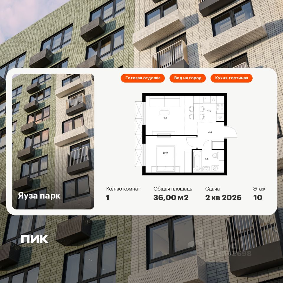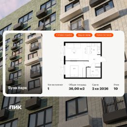 Продаётся 1-комн. квартира площадью 36 кв.м на 10 этаже 24 этажного дома (Корпус 5, Секция 1) проекта ПИК Яуза парк. Светлый просторный подъезд на уровне земли, функциональная планировка, большие окна, c отделкой.