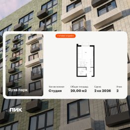 Продаётся квартира-студия площадью 20 кв.м на 2 этаже 24 этажного дома (Корпус 5, Секция 1) проекта ПИК Яуза парк. Светлый просторный подъезд на уровне земли, функциональная планировка, большие окна, c отделкой.