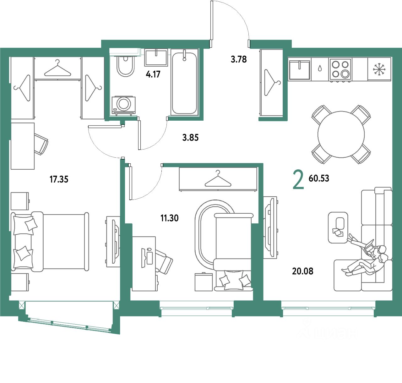 Продаётся 2-комнатная квартира в строящемся доме (Дом 2), срок сдачи: IV-кв. 2027, общей площадью 60.53 кв.м., на 4 этаже. Многоэтажные жилые дома с объектами инфраструктуры, расположенные по адресу: Московская область, г.о. Мытищи, г.Мытищи, мкр. 18Б, ул. Комарова.