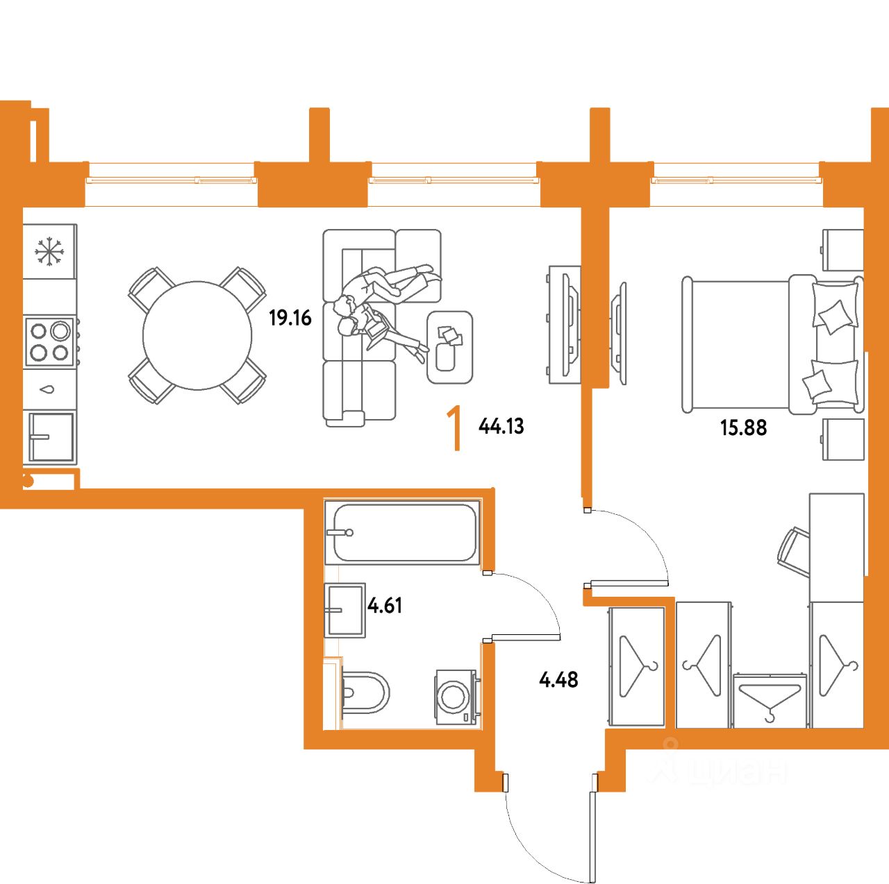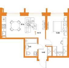 Продаётся 1-комнатная квартира в строящемся доме (Дом 2), срок сдачи: IV-кв. 2027, общей площадью 44.13 кв.м., на 5 этаже. Многоэтажные жилые дома с объектами инфраструктуры, расположенные по адресу: Московская область, г.о. Мытищи, г.Мытищи, мкр. 18Б, ул. Комарова.