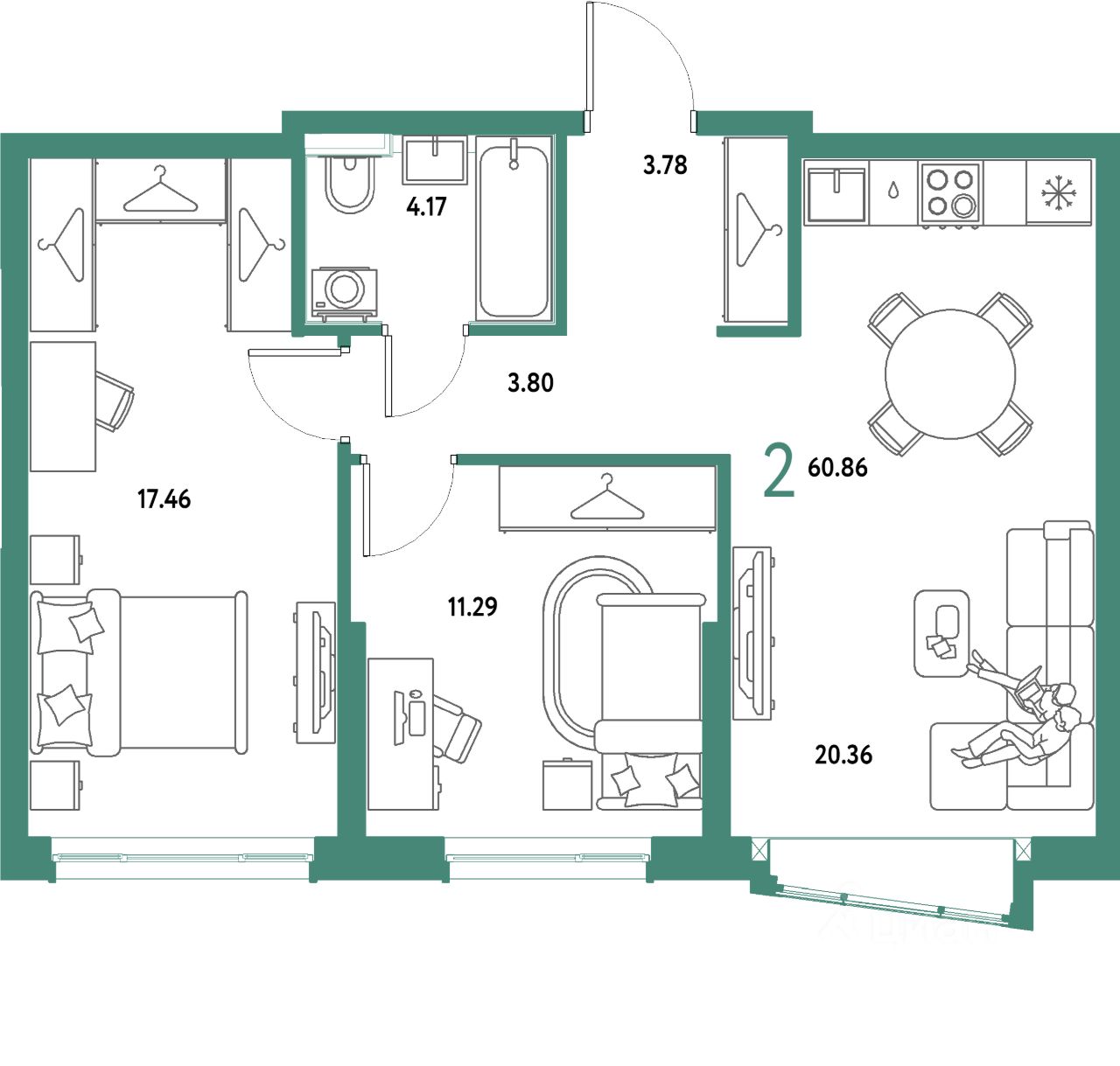 Продаётся 2-комнатная квартира в строящемся доме (Дом 2), срок сдачи: IV-кв. 2027, общей площадью 60.86 кв.м., на 14 этаже. Многоэтажные жилые дома с объектами инфраструктуры, расположенные по адресу: Московская область, г.о. Мытищи, г.Мытищи, мкр. 18Б, ул. Комарова.