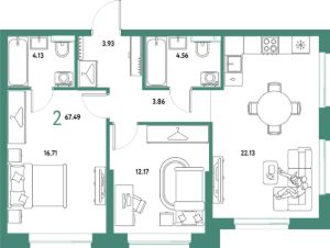 Продаётся 2-комнатная квартира в строящемся доме (Дом 2), срок сдачи: IV-кв. 2027, общей площадью 67.49 кв.м., на 6 этаже. Многоэтажные жилые дома с объектами инфраструктуры, расположенные по адресу: Московская область, г.о. Мытищи, г.Мытищи, мкр. 18Б, ул. Комарова.