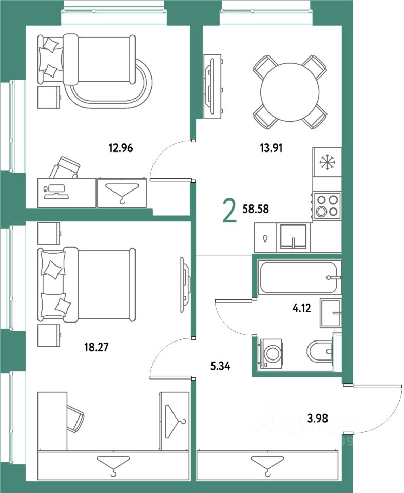 Продаётся 2-комнатная квартира в строящемся доме (Дом Васнецов), срок сдачи: IV-кв. 2027, общей площадью 58.58 кв.м., на 12 этаже. Многоэтажные жилые дома с объектами инфраструктуры, расположенные по адресу: Московская область, г.о. Мытищи, г.Мытищи, мкр. 18Б, ул. Комарова.