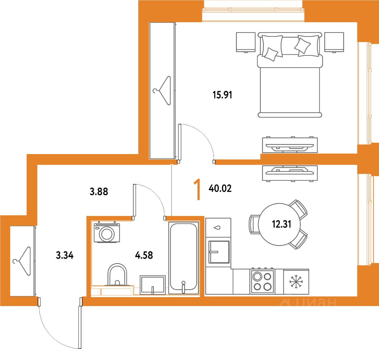 Продаётся 1-комнатная квартира в строящемся доме (Дом 2), срок сдачи: IV-кв. 2027, общей площадью 40.02 кв.м., на 12 этаже. Многоэтажные жилые дома с объектами инфраструктуры, расположенные по адресу: Московская область, г.о. Мытищи, г.Мытищи, мкр. 18Б, ул. Комарова.