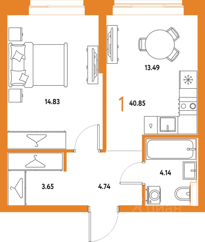 Продаётся 1-комнатная квартира в строящемся доме (Дом 2), срок сдачи: IV-кв. 2027, общей площадью 40.85 кв.м., на 14 этаже. Многоэтажные жилые дома с объектами инфраструктуры, расположенные по адресу: Московская область, г.о. Мытищи, г.Мытищи, мкр. 18Б, ул. Комарова.
