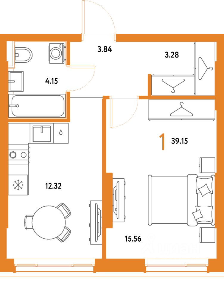 Продаётся 1-комнатная квартира в строящемся доме (Дом 2), срок сдачи: IV-кв. 2027, общей площадью 39.15 кв.м., на 2 этаже. Многоэтажные жилые дома с объектами инфраструктуры, расположенные по адресу: Московская область, г.о. Мытищи, г.Мытищи, мкр. 18Б, ул. Комарова.