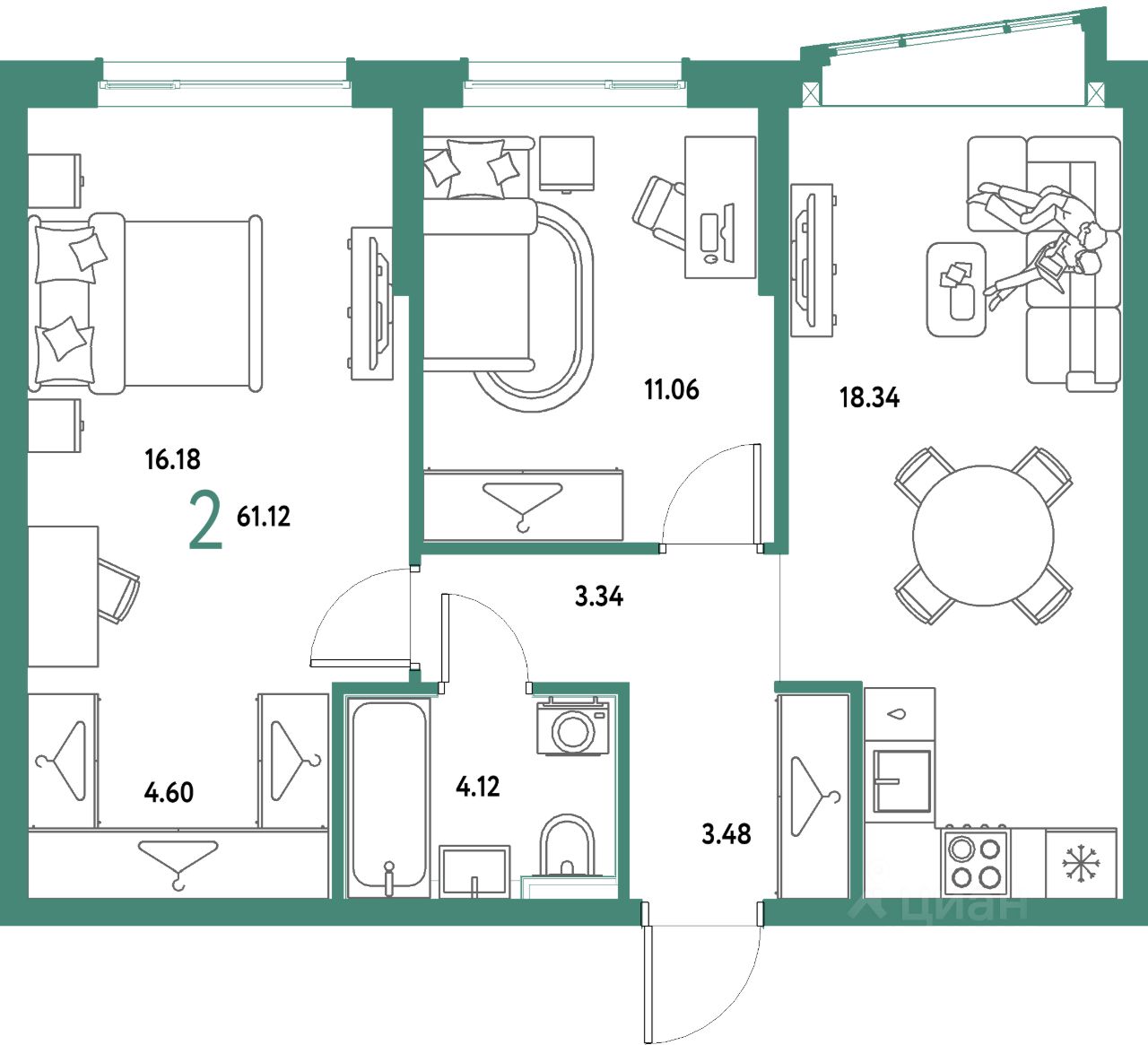 Продаётся 2-комнатная квартира в строящемся доме (Дом 2), срок сдачи: IV-кв. 2027, общей площадью 61.12 кв.м., на 7 этаже. Многоэтажные жилые дома с объектами инфраструктуры, расположенные по адресу: Московская область, г.о. Мытищи, г.Мытищи, мкр. 18Б, ул. Комарова.