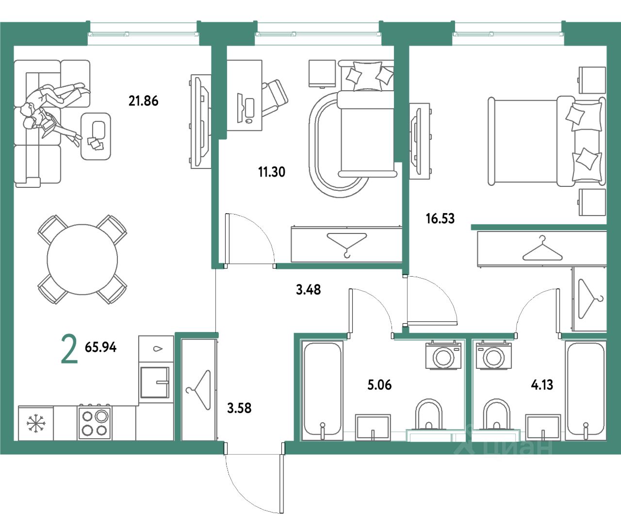 Продаётся 2-комнатная квартира в строящемся доме (Дом 2), срок сдачи: IV-кв. 2027, общей площадью 65.94 кв.м., на 7 этаже. Многоэтажные жилые дома с объектами инфраструктуры, расположенные по адресу: Московская область, г.о. Мытищи, г.Мытищи, мкр. 18Б, ул. Комарова.