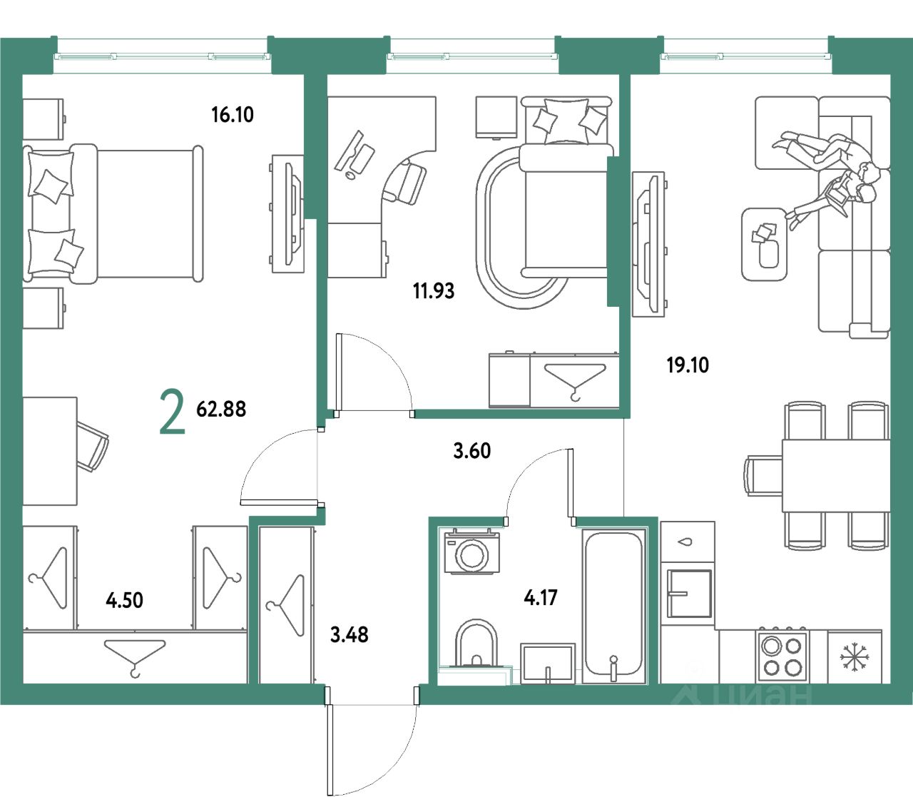 Продаётся 2-комнатная квартира в строящемся доме (Дом 2), срок сдачи: IV-кв. 2027, общей площадью 62.88 кв.м., на 8 этаже. Многоэтажные жилые дома с объектами инфраструктуры, расположенные по адресу: Московская область, г.о. Мытищи, г.Мытищи, мкр. 18Б, ул. Комарова.