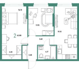 Продаётся 2-комнатная квартира в строящемся доме (Дом Васнецов), срок сдачи: IV-кв. 2027, общей площадью 62.88 кв.м., на 12 этаже. Многоэтажные жилые дома с объектами инфраструктуры, расположенные по адресу: Московская область, г.о. Мытищи, г.Мытищи, мкр. 18Б, ул. Комарова.