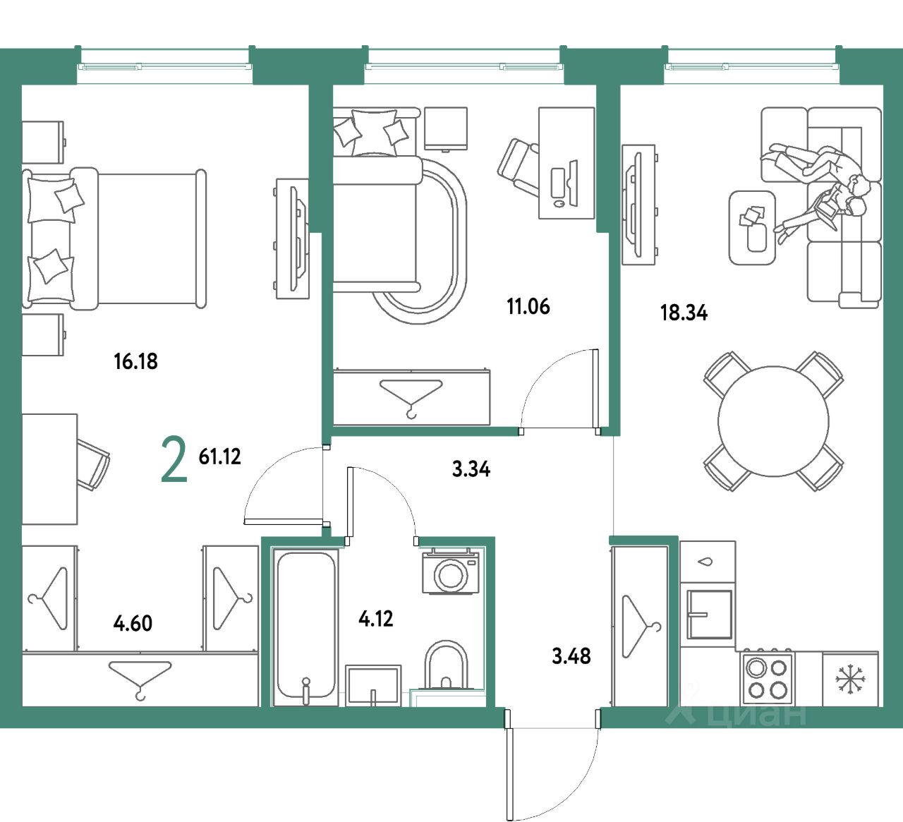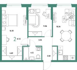 Продаётся 2-комнатная квартира в строящемся доме (Дом 2), срок сдачи: IV-кв. 2027, общей площадью 61.12 кв.м., на 16 этаже. Многоэтажные жилые дома с объектами инфраструктуры, расположенные по адресу: Московская область, г.о. Мытищи, г.Мытищи, мкр. 18Б, ул. Комарова.