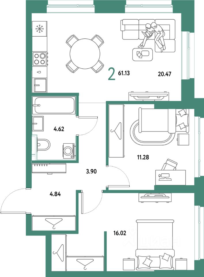 Продаётся 2-комнатная квартира в строящемся доме (Дом 2), срок сдачи: IV-кв. 2027, общей площадью 61.13 кв.м., на 4 этаже. Многоэтажные жилые дома с объектами инфраструктуры, расположенные по адресу: Московская область, г.о. Мытищи, г.Мытищи, мкр. 18Б, ул. Комарова.