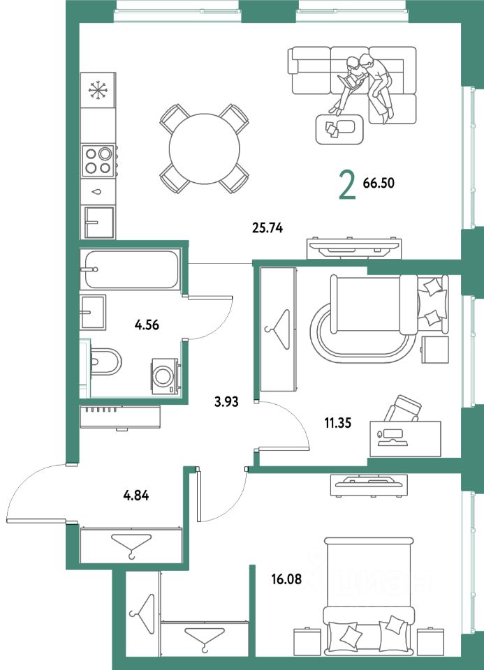 Продаётся 2-комнатная квартира в строящемся доме (Дом 2), срок сдачи: IV-кв. 2027, общей площадью 66.5 кв.м., на 9 этаже. Многоэтажные жилые дома с объектами инфраструктуры, расположенные по адресу: Московская область, г.о. Мытищи, г.Мытищи, мкр. 18Б, ул. Комарова.
