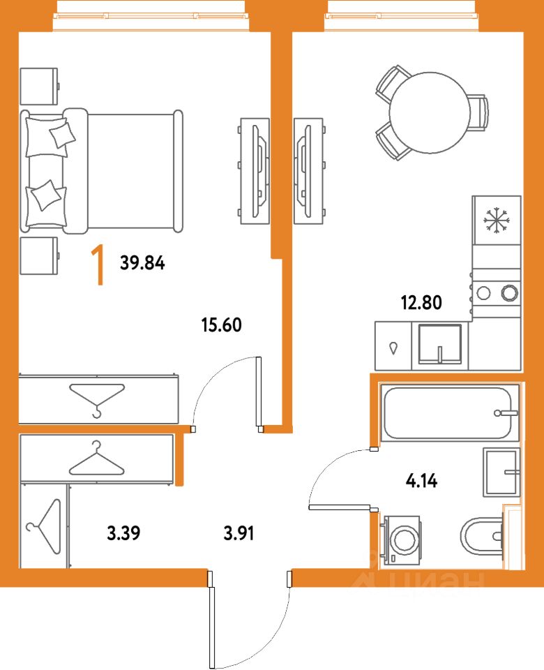 Продаётся 1-комнатная квартира в строящемся доме (Дом 2), срок сдачи: IV-кв. 2027, общей площадью 39.84 кв.м., на 13 этаже. Многоэтажные жилые дома с объектами инфраструктуры, расположенные по адресу: Московская область, г.о. Мытищи, г.Мытищи, мкр. 18Б, ул. Комарова.