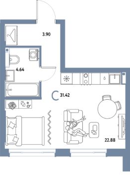 Продаётся студия в строящемся доме (Дом 2), срок сдачи: IV-кв. 2027, общей площадью 31.42 кв.м., на 3 этаже. Многоэтажные жилые дома с объектами инфраструктуры, расположенные по адресу: Московская область, г.о. Мытищи, г.Мытищи, мкр. 18Б, ул. Комарова.