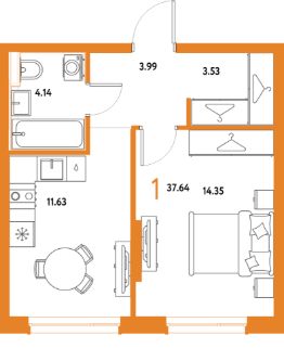 Продаётся 1-комнатная квартира в строящемся доме (Дом 2), срок сдачи: IV-кв. 2027, общей площадью 37.64 кв.м., на 6 этаже. Многоэтажные жилые дома с объектами инфраструктуры, расположенные по адресу: Московская область, г.о. Мытищи, г.Мытищи, мкр. 18Б, ул. Комарова.