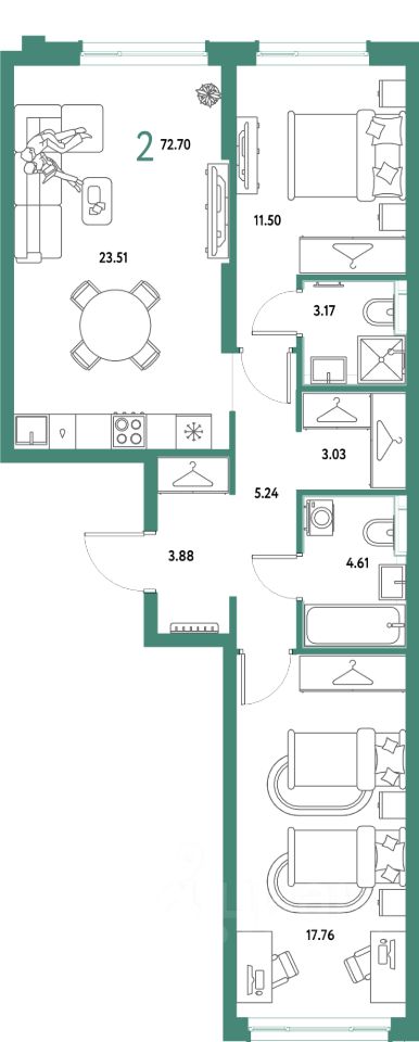 Продаётся 2-комнатная квартира в строящемся доме (Дом 2), срок сдачи: IV-кв. 2027, общей площадью 72.7 кв.м., на 9 этаже. Многоэтажные жилые дома с объектами инфраструктуры, расположенные по адресу: Московская область, г.о. Мытищи, г.Мытищи, мкр. 18Б, ул. Комарова.