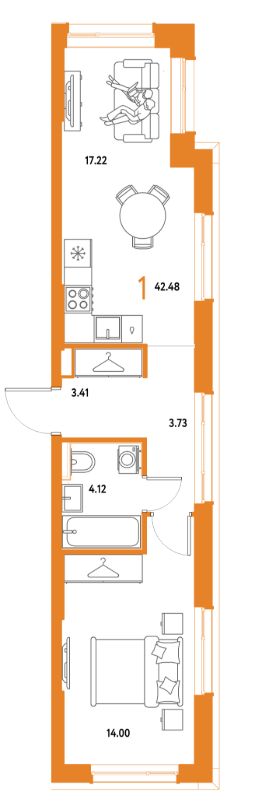 Продаётся 1-комнатная квартира в строящемся доме (Дом 2), срок сдачи: IV-кв. 2027, общей площадью 42.48 кв.м., на 2 этаже. Многоэтажные жилые дома с объектами инфраструктуры, расположенные по адресу: Московская область, г.о. Мытищи, г.Мытищи, мкр. 18Б, ул. Комарова.