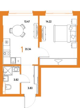 Продаётся 1-комнатная квартира в строящемся доме (Дом 2), срок сдачи: IV-кв. 2027, общей площадью 35.34 кв.м., на 4 этаже. Многоэтажные жилые дома с объектами инфраструктуры, расположенные по адресу: Московская область, г.о. Мытищи, г.Мытищи, мкр. 18Б, ул. Комарова.