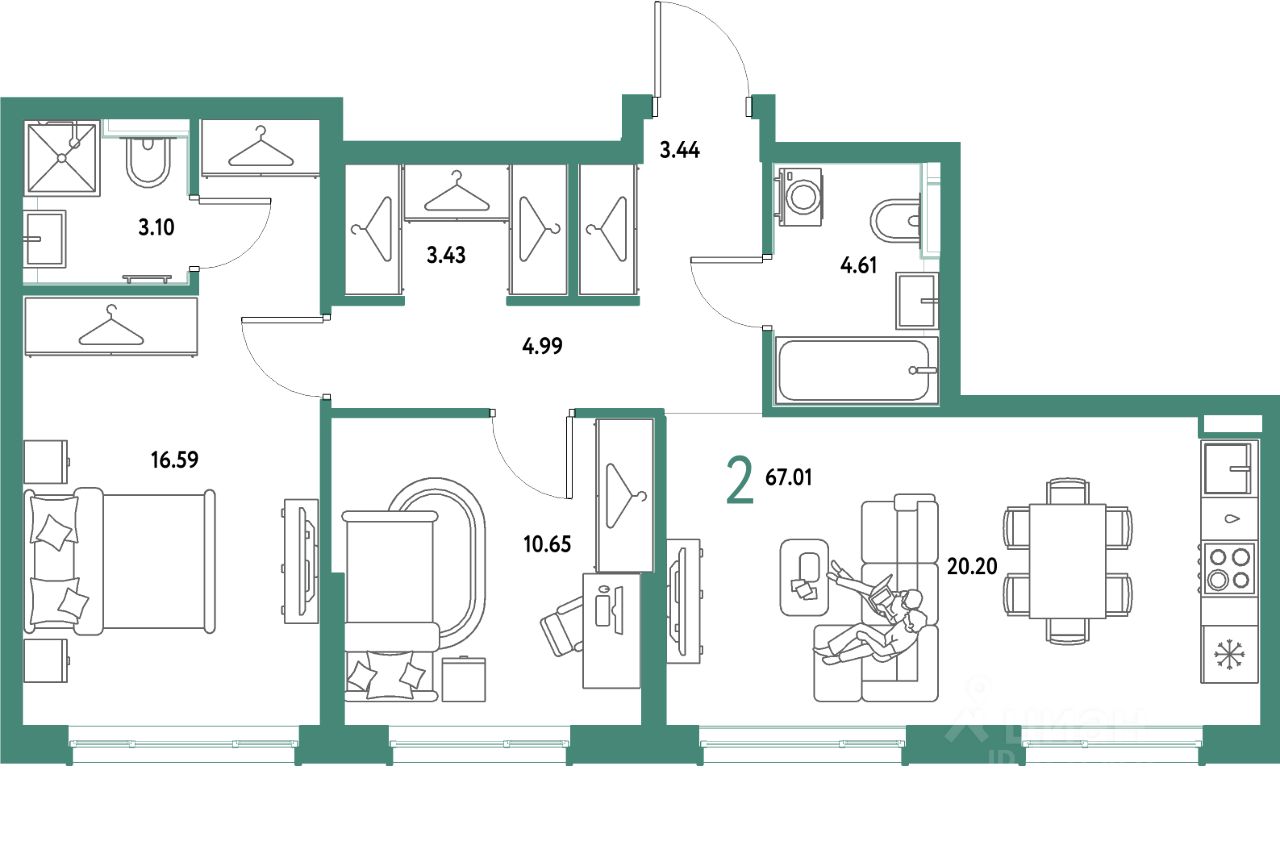 Продаётся 2-комнатная квартира в строящемся доме (Дом 2), срок сдачи: IV-кв. 2027, общей площадью 67.01 кв.м., на 7 этаже. Многоэтажные жилые дома с объектами инфраструктуры, расположенные по адресу: Московская область, г.о. Мытищи, г.Мытищи, мкр. 18Б, ул. Комарова.